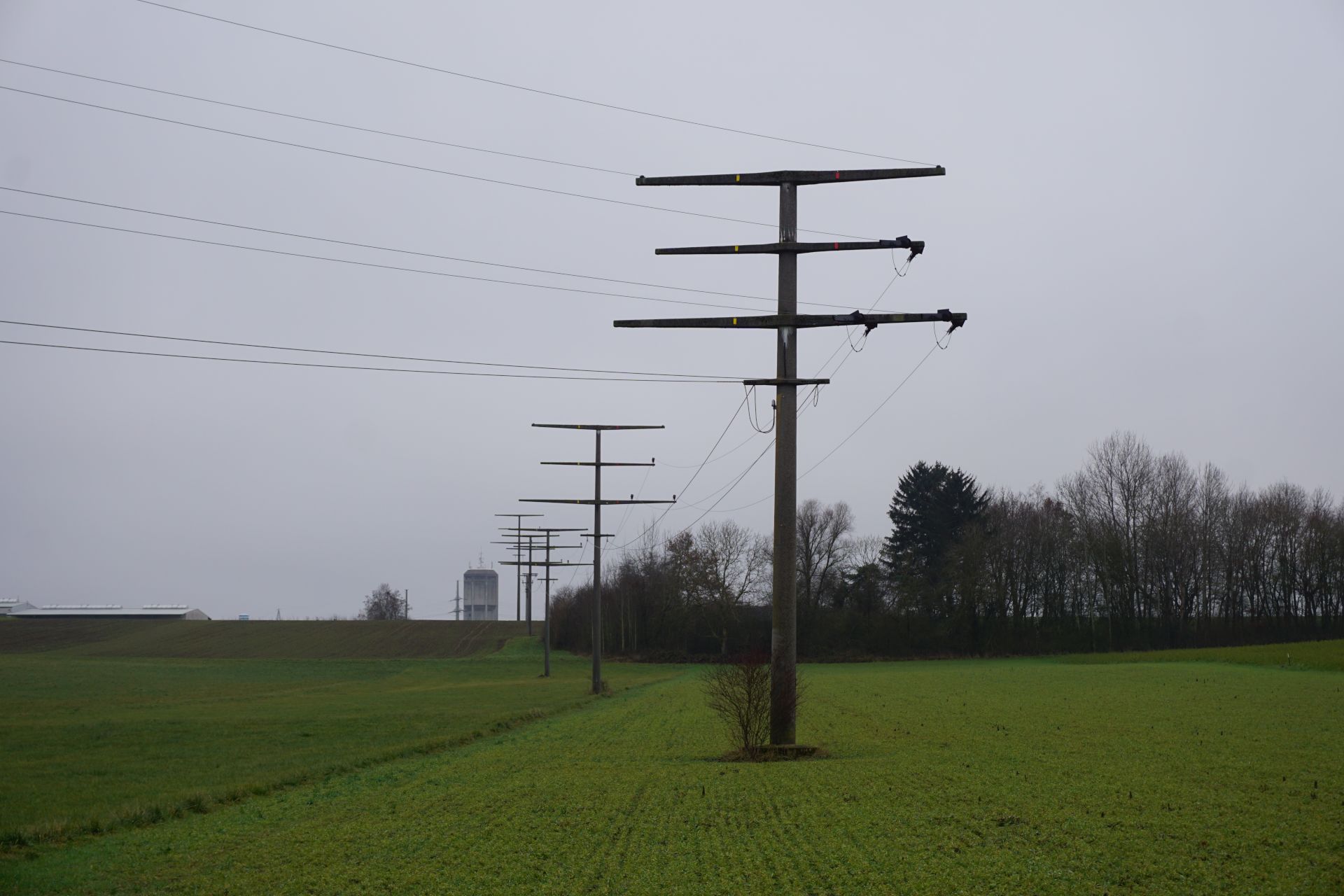 Die 20 kV-Leitungen, die vom Gewerbegebiet Preith Richtung Pollenfeld führen, werden auf einer Länge von 10,5 Kilometern abgebaut und in die Erde verlegt (Foto: Siegfried Fries)