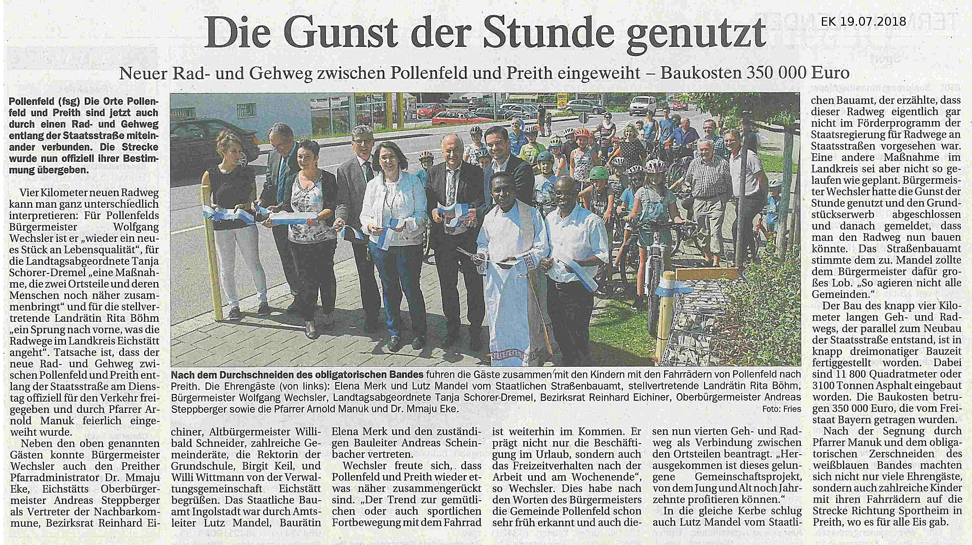 Fahrradweg von Pollenfeld nach Preith bis zur Lüften